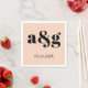Black initials bold typography peach pink wedding paper napkin. It coordinates with our "Coral peach pink poppy flowers" collection. The cover has been designed using some assets from Freepik.com