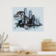Illustration of a city in black ink. This design looks really effective on these Poster
