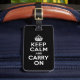 Black "Keep Calm and Carry On" takes on a whole new meaning on a luggage tag. But, if you can't carry on while on your summer vacation, you can at least have funny personalized luggage tags by changing the address on the back.