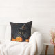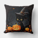 Black Kitten in Witch Hat Amid Halloween Pumpkins Throw Pillow