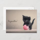 Black Kitten Playing with Pink Ball of Wool Postcard