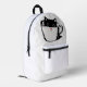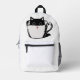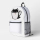 Black kitten with red nose hiding in a cup printed backpack