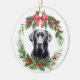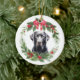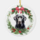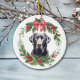 Black Lab Retriever Red Bow Holly Wreath Ceramic Ornament