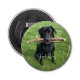 Black Lab with two sticks Dog Photo and Name Bottle Opener