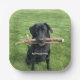 Black Lab with two sticks Dog Photo and Name Paper Plate