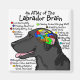 An atlas or map to your Black labrador's Brain - find out what motivates your dog and what it thinks about in this funny art illustration by Terry Pond. Hilarious mind icons explore such things as the Retriever's love of water and love of you and need to chase things and retrieve them.