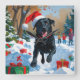 Black Labrador Christmas Festive Snow Scene Square Wall Clock