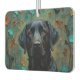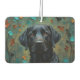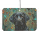 The striking black Labrador is beautifully rendered against a backdrop of rich, warm-toned fall leaves, creating a serene, nature-inspired scene. This air freshener is perfect for lovers of the breed.