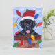 Whimsy and funny Labrador Retriever Painting painted by Naomi Ochiai from Japan. An adorable Black Labrador Puppy is popping up from the chimney. :) Santa Hat on the head. Black Labrador Puppy Christmas Cards and Gifts for dog lovers who love Black Labs!! You can customize text and more!