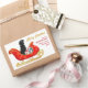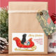 On these pretty Holiday decorative stickers, a black Labrador Retriever dog sits in a pretty red and gold decorative sleigh. Beside the dog sits gift packages tied with colourful bows. The gold script text at the right says "MERRY CHRISTMAS" and your custom text is in red. Perfect for your Christmas correspondence or gift packages! More retriever dog images, as well as other breeds, at Dog Village.