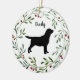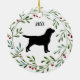 Black Labrador Holiday Ornament in a pretty wreath design. Personalize with name and year. COPYRIGHT © 2020 Judy Burrows, Black Dog Art - All Rights Reserved