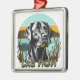 Christmas ornament. AI art watercolor black lab with a vintage sunset with retro colours teal and brown.