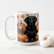 Black Labrador With Pumpkins And Autumn Leaves Coffee Mug