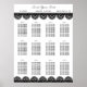 Let your wedding guests know where they are sitting with this seating chart poster. It features my black lace illustrations against a plain white background. The Headline "Find Your Seat" is at the top. Below that the names of the bride and groom, the wedding date and the city and state of the wedding are displayed. Then there's spots to customize each table arrangement for your guests.