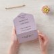 This easy to customize all-in-one wedding invitation has a delicate and pretty style with my black lace illustrations set against a soft lavender coloured background. This invitation requires no separate envelope and no separate RSVP card. It's designed for you to write in the name and address of each recipient by hand.
