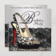 Elégante chaussure à talon rouge, dentelle noire et invitation à la fête d'anniversaire léopard. Cette invitation à la fête d'anniversaire de léopard rouge est facilement customisée pour votre événement en choisissant simplement le bouton "Customisez-le !" pour commencer à ajouter vos détails d'événement, le style de police, la taille et la couleur de police et le libellé. Veuillez noter que tous les autocollants, cartes et modèles d'invitation que vous trouverez sur Zazzle sont des graphiques imprimés sans bijoux, arcs, surélevés, gaufrés, ni pièces ou pièces ajoutées. com