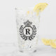 Drink like a king or queen with this monogrammed, royalty-inspired tumbler glass. Designed in classic black, the simply sophisticated design includes an elegant laurel wreath and crown motif. Your personalized monogram letter fills the centre. This upscale design is fit for the royal couple.