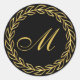 Black Laurel Wreath with Custom Monogram Classic Round Sticker