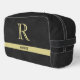 Black Leather Texture Trim Gold Monogram Name Dopp Kit