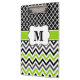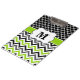 Show off your style in a fun way with this black and lime green quatrefoil and chevron modern and trendy personalized clipboard.