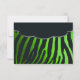 This dramatic response card features a background image of black zebra stripes and metallic neon flourescent green.