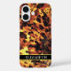 Elevate your iPhone 16 with this chic Black Line White Font Add Your Name Tortoiseshell Case! Showcasing the trendy tortoiseshell pattern that’s making a major comeback, this case effortlessly fuses vintage elegance with modern style. Featuring elegant sleek white font, you can personalize it by adding your name over a sleek black stripe framed with gold toned lines.