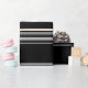 Black Lined wrapping paper with horizontal 3D metallic lines running across a pure black background. © Morning 6
