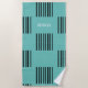 Black Lines on Light teal with Name Beach Towel