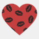 A seamless, bold pattern featuring black lip prints scattered across a vibrant red background, creating a striking and stylish design