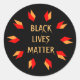 Easily personalize or remove the text on these stickers inspired by the tragic shootings of black young people by police. It features an abstract pattern of gold, red and black with the text: Black Lives Matter. Let's all peacefully work for justice in our communities.