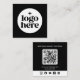 Logo QR Code Square Business Card – White & Black Custom Social Media Icons.