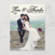 Send a personal and stylish message of gratitude with this custom photo wedding thank you postcard. Designed with a white “Love & Thanks” overlay in whimsical rustic script, this card features your favorite wedding photo as the full background.