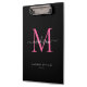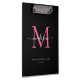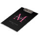 Modern Black Magenta Pink Monogram Stylish Elegant Script Name Clipboard