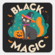 Black magic cute witch cat, Halloween theme design Square Sticker
