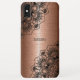 Elegant black floral mandala lace over an image of metallic copper brushed aluminum look.