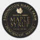 Edit your business name, address, volume of maple syrup and grade. Gold sugar maple leaf with Maple Syrup written in metallic gold text and a simple border.