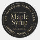 Simple and Elegant Round Black Maple Syrup Label with the words "Maple Syrup" in an embossed metallic gold font. Dashed line border in gold.