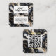 Customize for work, school or home office. text and rectangle are editable, size and colour. Faux black white gold marbling square business card design features your business logo and custom QR code on the back. Customize the wording with your preferred business information, such as the business name, address, phone number, or website.