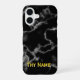 Digital abstract design resembling black marble stone with white veins. Add your name or initials, or leave blank!
