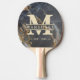 Black Marble & Gold Stone Monogram & Name Overlay Ping Pong Paddle