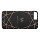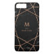 This stylish case features a modern faux rose gold geometric pattern, on a black marble look background. There is also a spot to personalize with your name and monogram.