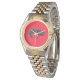 The watch is bright and shiny. It feels strong and durable. It is very appealing and attractive. The printed image appears clear. It is a perfect reminder for me to "Be Present" everywhere I go.