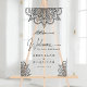 Traditional Muslim wedding welcome sign featuring an elegant henna art and 'Bismillah' in Arabic calligraphy.