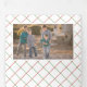 This lovely Christmas trifold holiday card displays your favourite family photos, red der and a tree and the wish "Merry Christmas” in black typography. Your names are written in a modern font in black. The inside panels are covered with a red and green net pattern and family photos. Photography © Storytree Studios, Stanford, CA