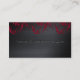 Elegant yet discreet business card - dark brushed metallic background on both sides - the front has an ornate deep red damask border on top - the text appears almost engraved - NOTE: No real gold, diamonds, glitter, gems,silver or metal are on this card- no engraving either - it is all artistically designed to appear this way-