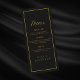The "Black Minimalist Elegant Wedding Menu" adds a touch of modern sophistication to your wedding reception. With its sleek black background and minimalist typography, this menu design exudes timeless elegance. Perfect for showcasing your wedding feast in a clean and stylish format, it can be customized to include your courses, drinks, and special dietary options. This menu is ideal for couples who appreciate a contemporary yet classy aesthetic, making it a perfect addition to your elegant black wedding theme.