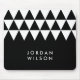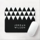 Minimalist black mouse pad featuring a modern white triangle pattern that you can personalize with your name.