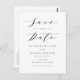Announce your wedding date to family and friends with this minimalist save the date announcement postcard. It features a black dainty script and classic typography. Personalize by adding your details. This minimalist save the date postcard is perfect for any wedding theme or season.
