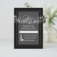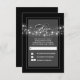 String of lights wedding RSVP cards with black grey and white calligraphy and twinkle lights hanging on the word RSVP.
