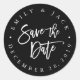 Black | Modern Brush Lettered Save the Date Classic Round Sticker